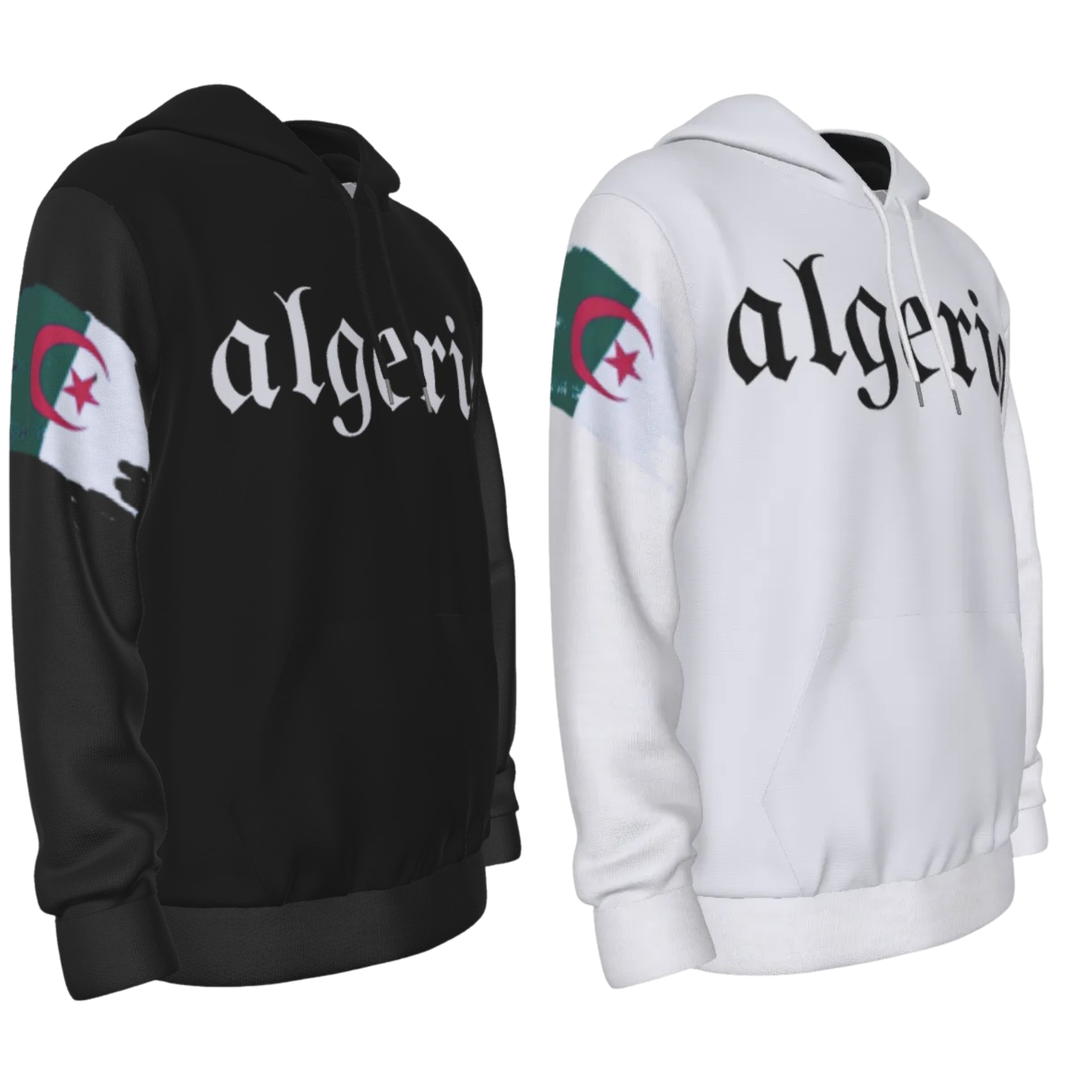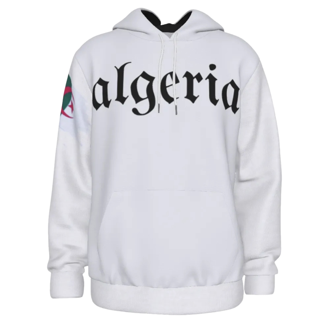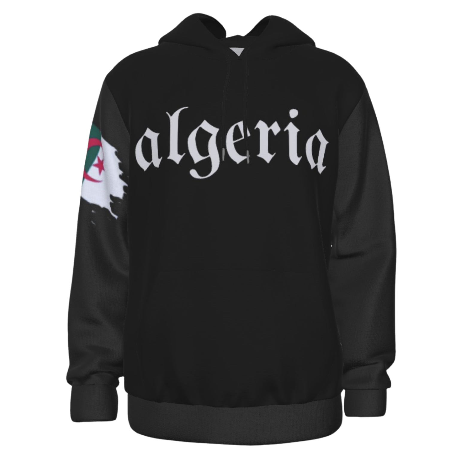 Represent your culture and your roots with this Algeria Heritage Hoodie! This Hoodie includes the country's name on the Front, Map and Flag on the Sleeves and the country's name, a picture of it's biggest Mosque and it's brief description in the back! Order Now!