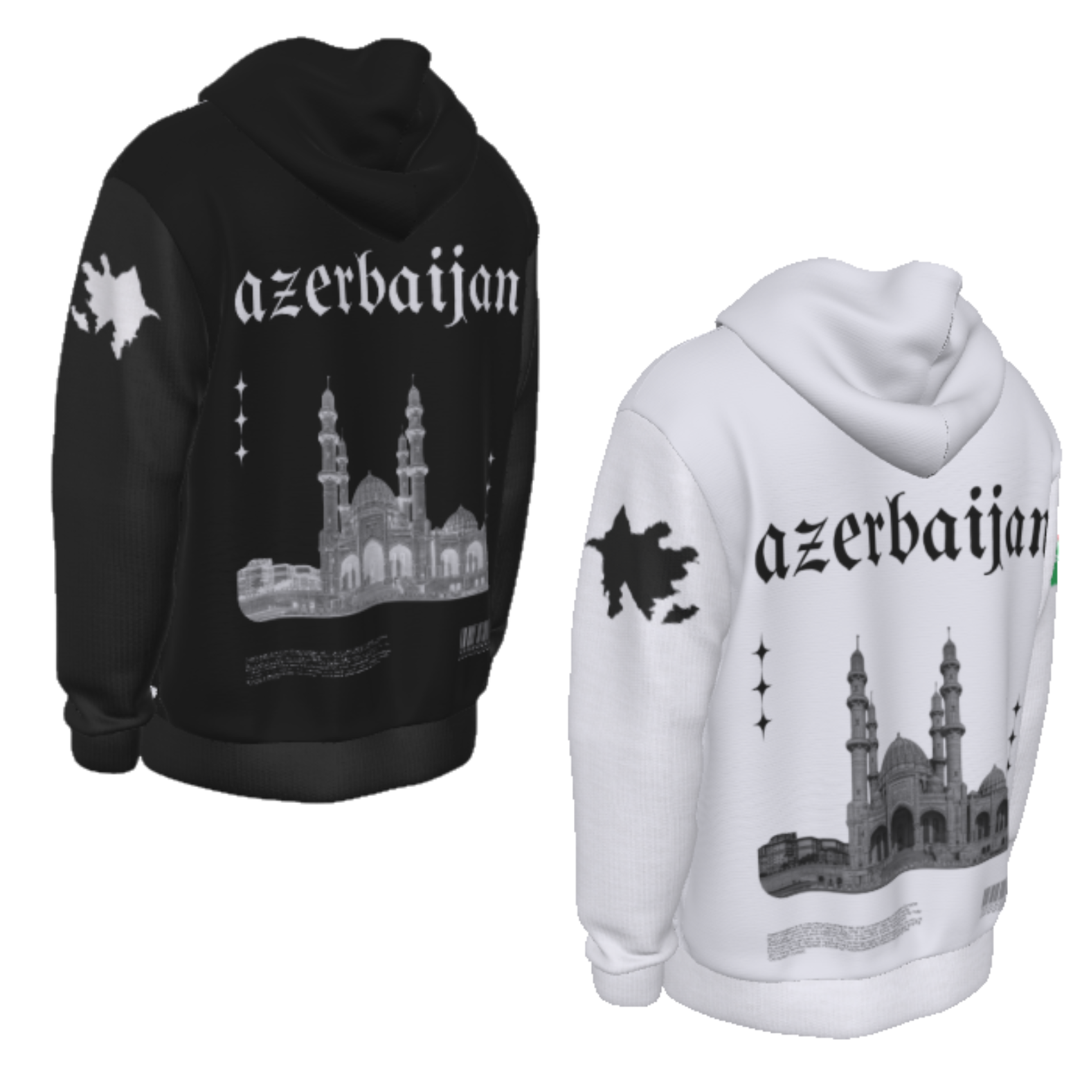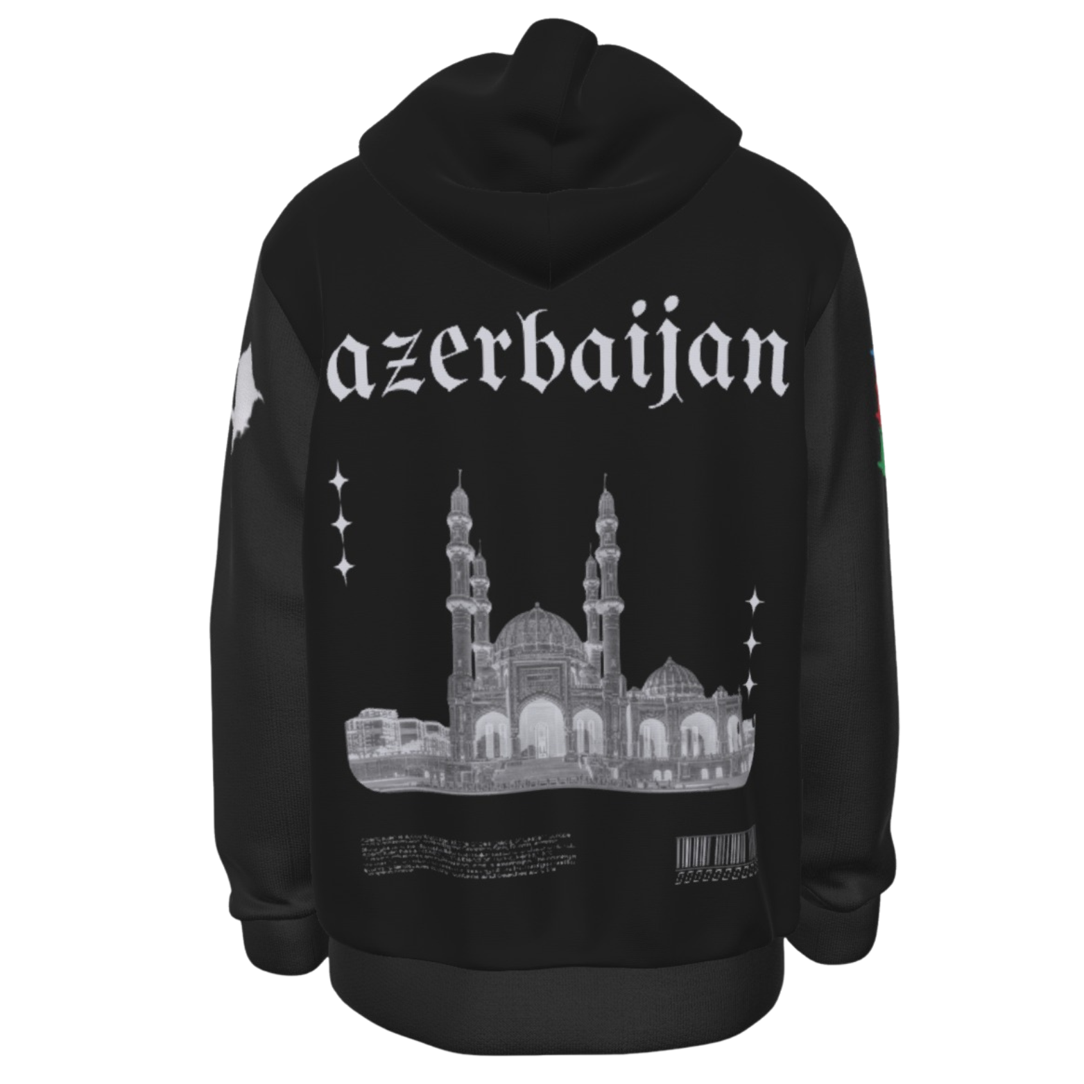 Represent your culture and your roots with this Azerbaijan Heritage Hoodie! This Hoodie includes the country's name on the Front, Map and Flag on the Sleeves and the country's name, a picture of it's biggest Mosque and it's brief description in the back! Order Now!