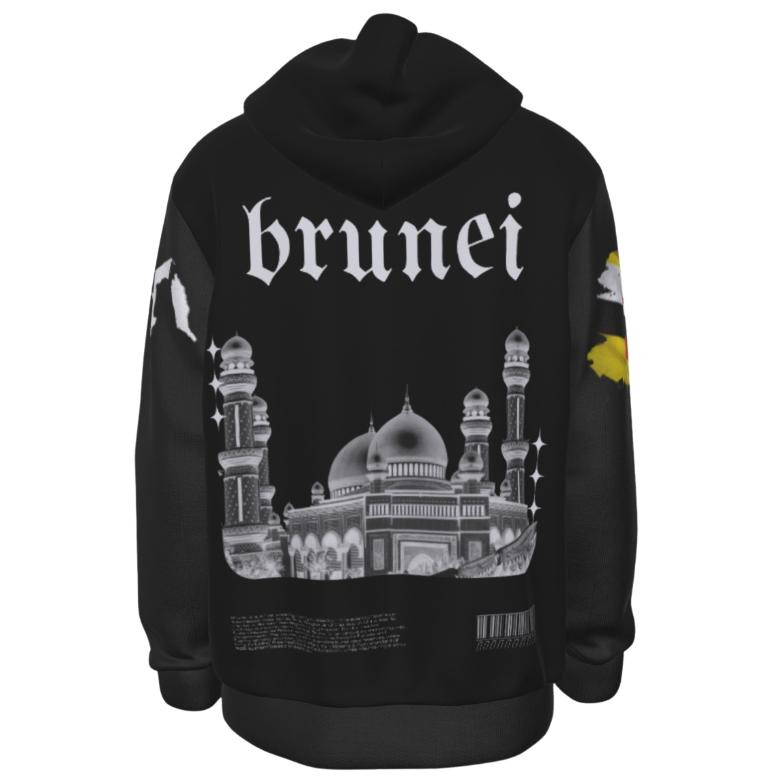 Represent your culture and your roots with this Brunei Heritage Hoodie! This Hoodie includes the country's name on the Front, Map and Flag on the Sleeves and the country's name, a picture of it's biggest Mosque and it's brief description in the back! Order Now!