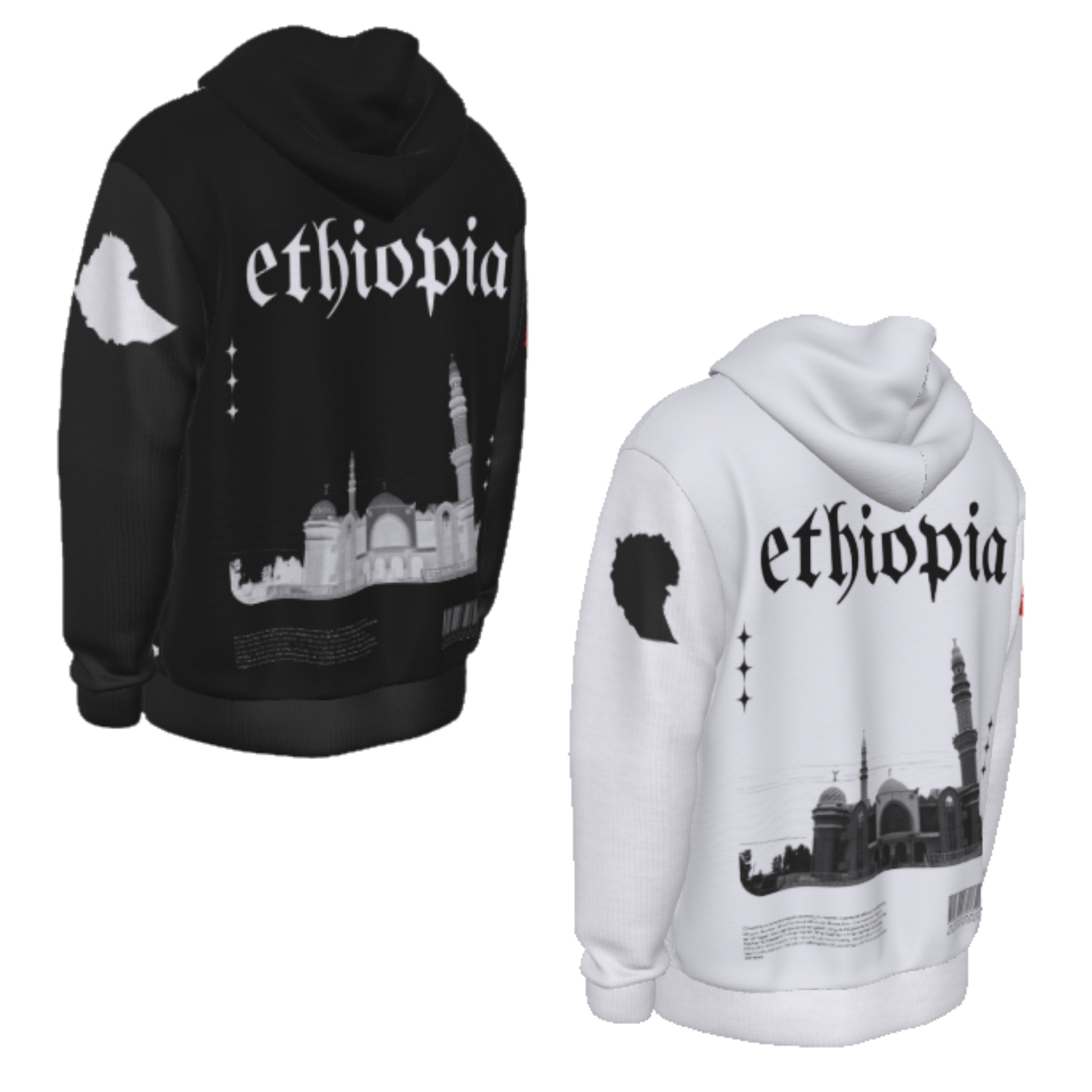 Represent your culture and your roots with this Ethiopia Heritage Hoodie! This Hoodie includes the country's name on the Front, Map and Flag on the Sleeves and the country's name, a picture of it's biggest Mosque and it's brief description in the back! Order Now!