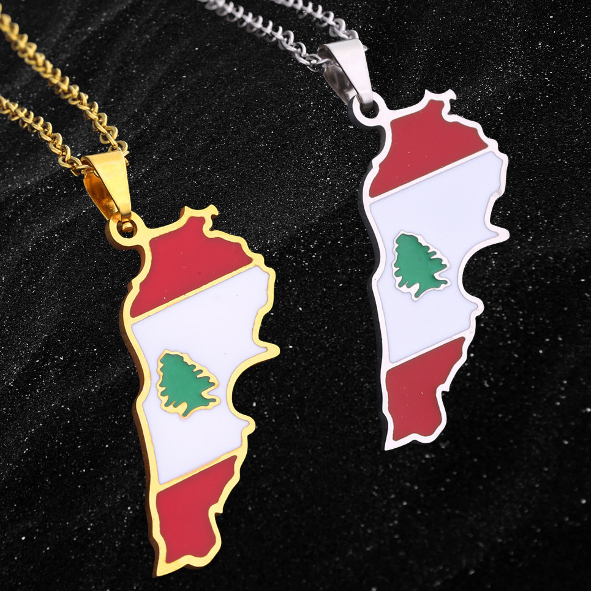 Represent your Heritage with this Lebanon Map Necklace. The Necklace is shaped as the map of Lebanon colored in it's Flag. Available in Gold and Silver!