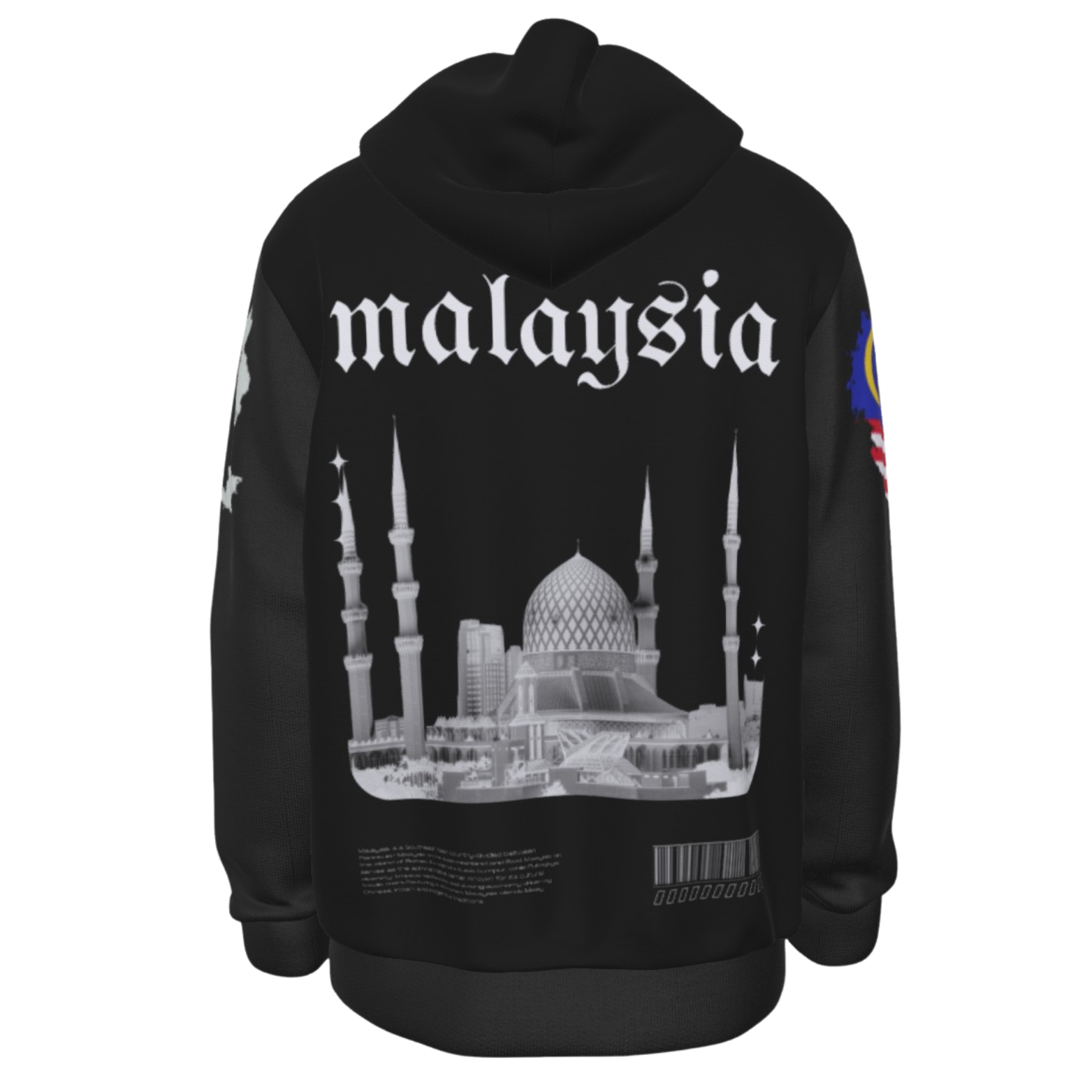 Represent your culture and your roots with this Malaysia Heritage Hoodie! This Hoodie includes the country's name on the Front, Map and Flag on the Sleeves and the country's name, a picture of it's biggest Mosque and it's brief description in the back! Order Now!
