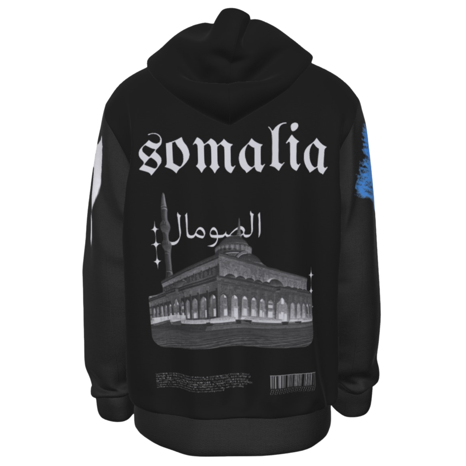 Represent your culture and your roots with this Somalia Heritage Hoodie! This Hoodie includes the country's name on the Front, Map and Flag on the Sleeves and the country's name, a picture of it's biggest Mosque and it's brief description in the back! Order Now!