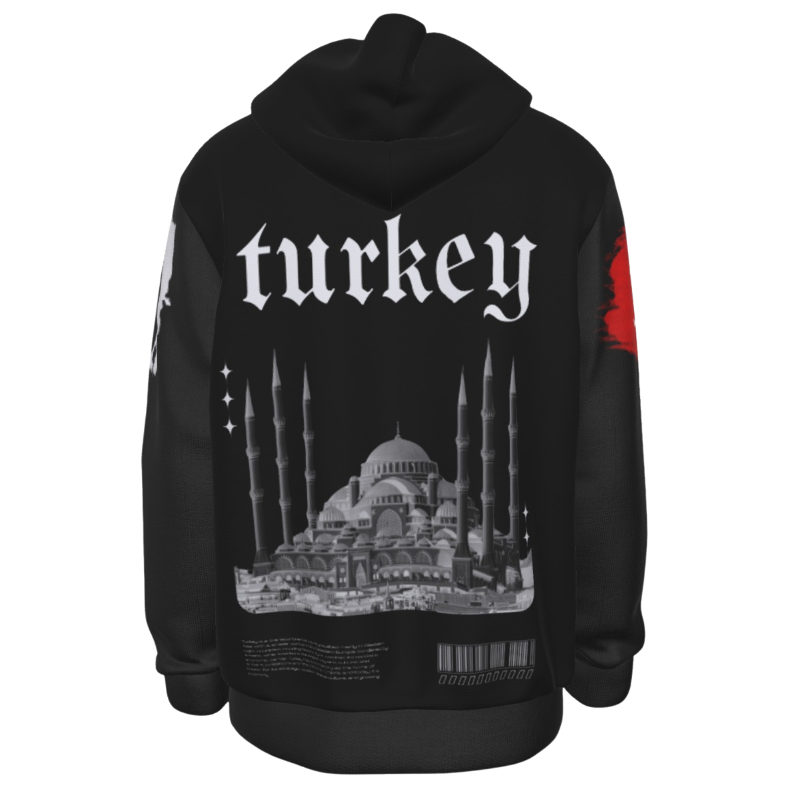 Represent your culture and your roots with this Turkey Heritage Hoodie! This Hoodie includes the country's name on the Front, Map and Flag on the Sleeves and the country's name, a picture of it's biggest Mosque and it's brief description in the back! Order Now!