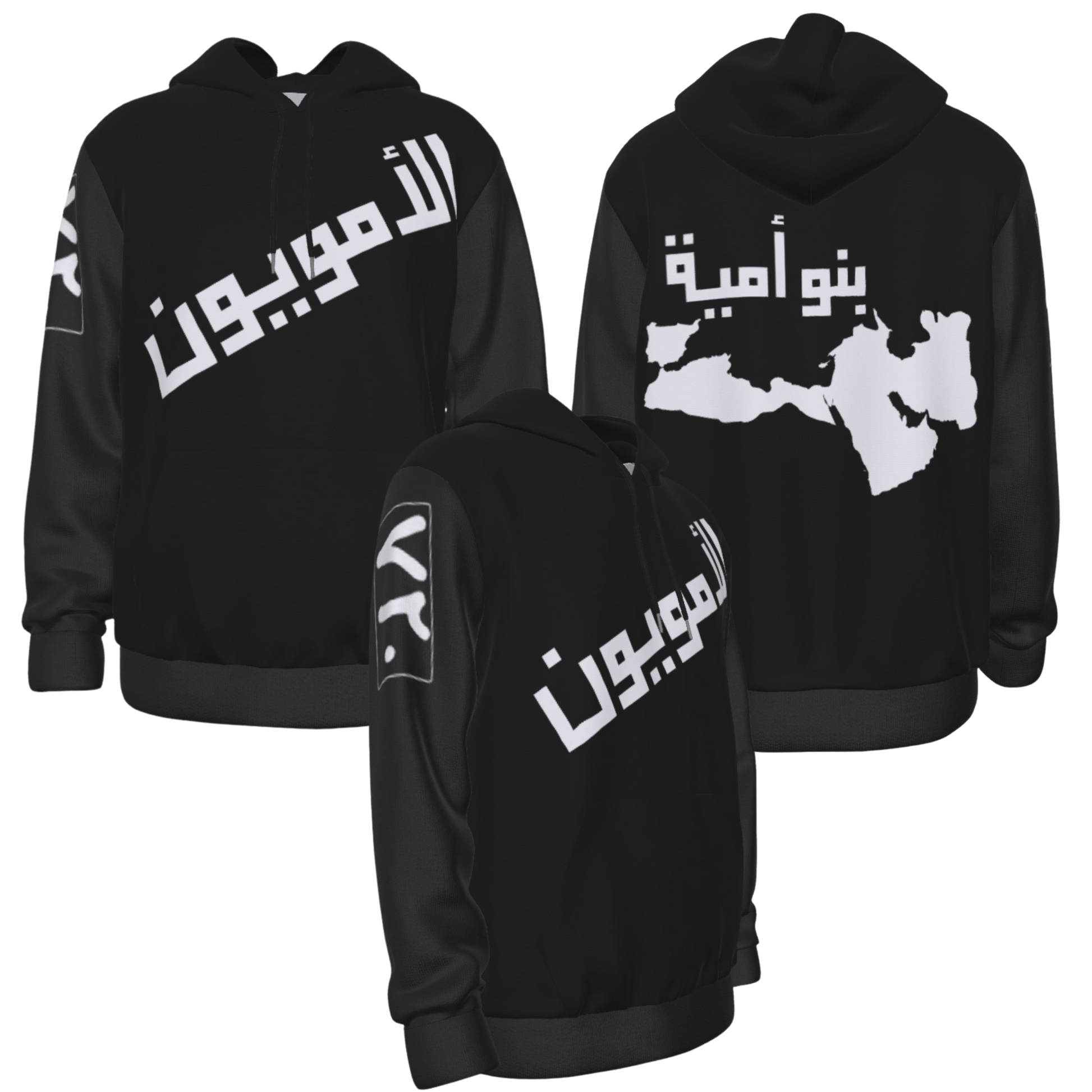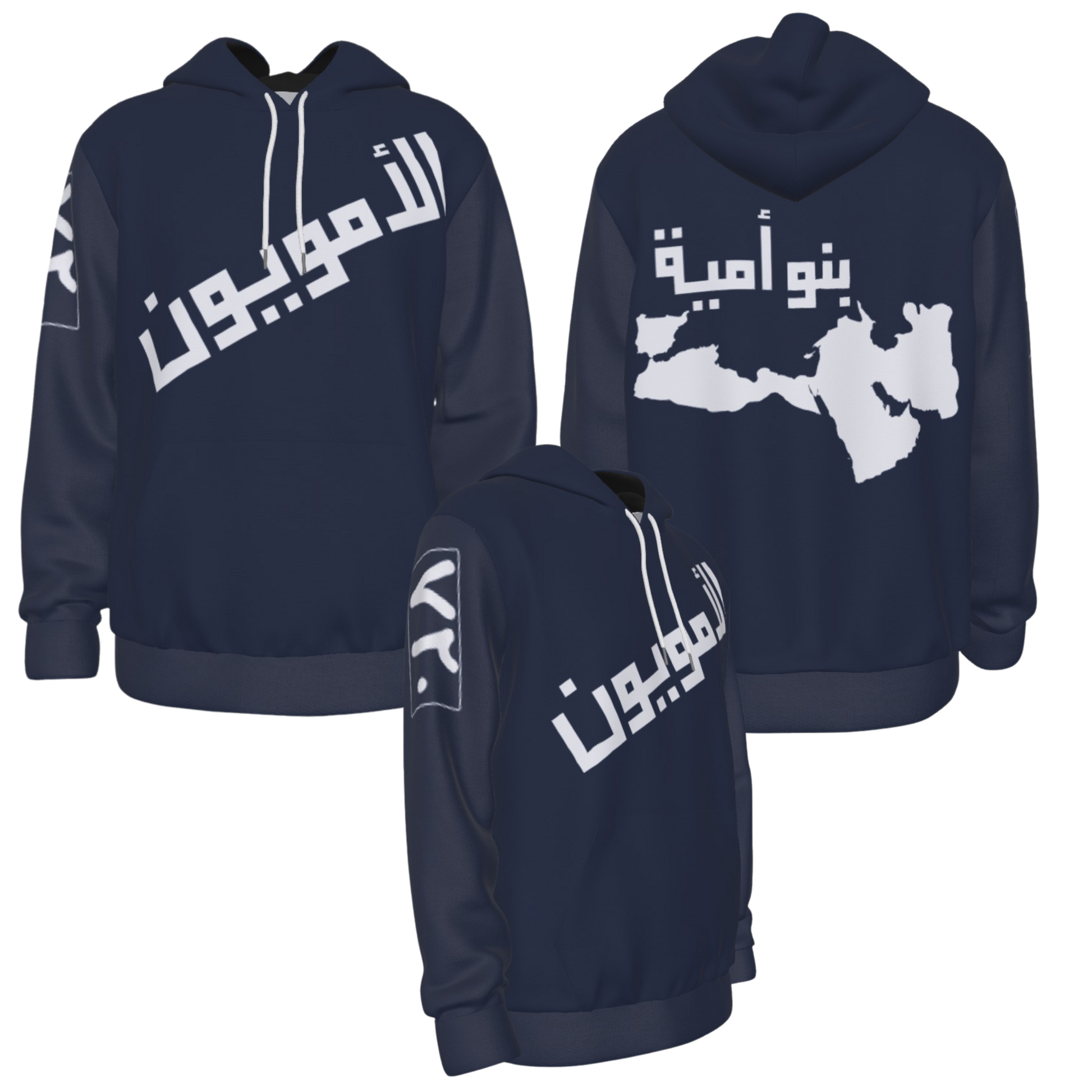 Stand out with this Umayyad Hoodie. "الأمويون " in arabic on the front side of the hoodie means "The Ummayyads", the ٧٢٠ on the sleeve (720 in english numbers) is the year when the Caliphate reached it's peak territory which it maintained for about 30 years. The back shows the map of the Umayyad Caliphate at its peak, as well as word بنو أمية which means Sons of Umayyads. This hoodie is available in various colors. Choose the one you like and order now!